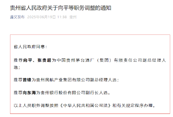 6月19日,遵义发布消息十大杠杆炒股平台,贵州省人民政府同意推荐向平、张贵超为中国贵州茅台酒厂(集团)有限责任公司副总经理人选;推荐曾锋为贵州民航产业集团有限公司副总经理人选;推荐向东海为贵州银行股份有限公司副行长人选。